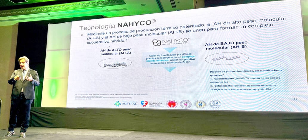 - Tecnología patentada NAYHCO®, que genera un producto híbrido que combina ácido hialurónico de alto y bajo peso molecular.